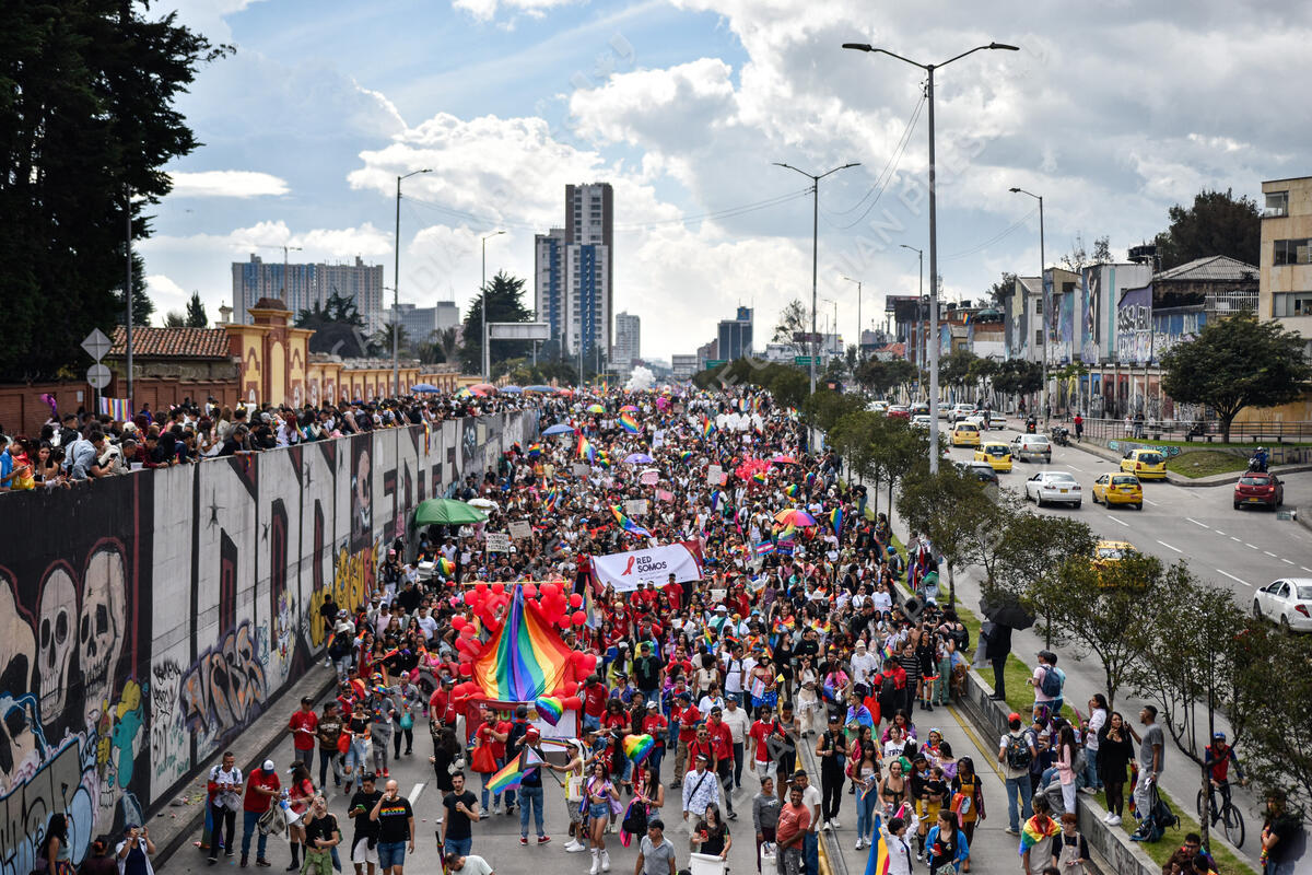Demonstrators and members of the LGTBIQ+ community take part during the international pride parade celebrations, in Bogota, Colombia, June 30, 2024. Photo by: Cristian Bayona/Long Visual Press/ABACAPRESS.COM