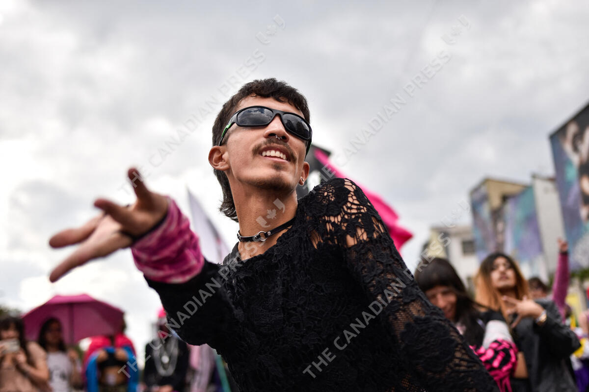 Demonstrators and members of the LGTBIQ+ community take part during the international pride parade celebrations, in Bogota, Colombia, June 30, 2024. Photo by: Cristian Bayona/Long Visual Press/ABACAPRESS.COM