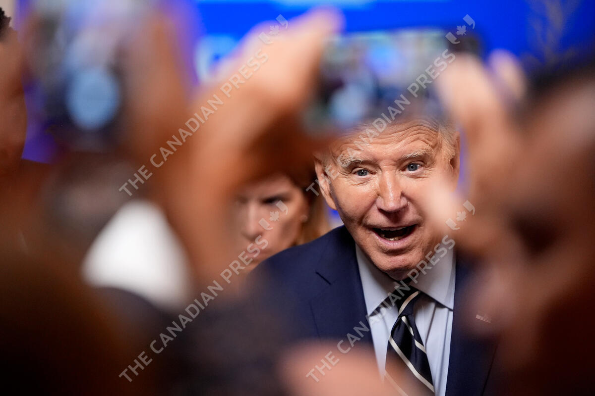 President Joe Biden attends a reception celebrating Greek Independence Day in the East Room of the White House in Washington, Thursday, April 4, 2024. (AP Photo/Mark Schiefelbein)