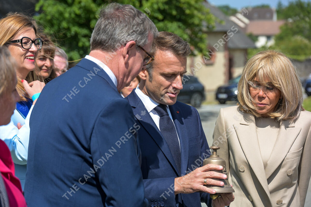 French President Emmanuel Macron attends a ceremony for civilian victims, as part of 80th anniversary of ‘D-Day’, in Saint Lo, in Normandie, France, on June 5, 2024. Photo by Ammar Abd Rabbo/ABACAPRESS.COM