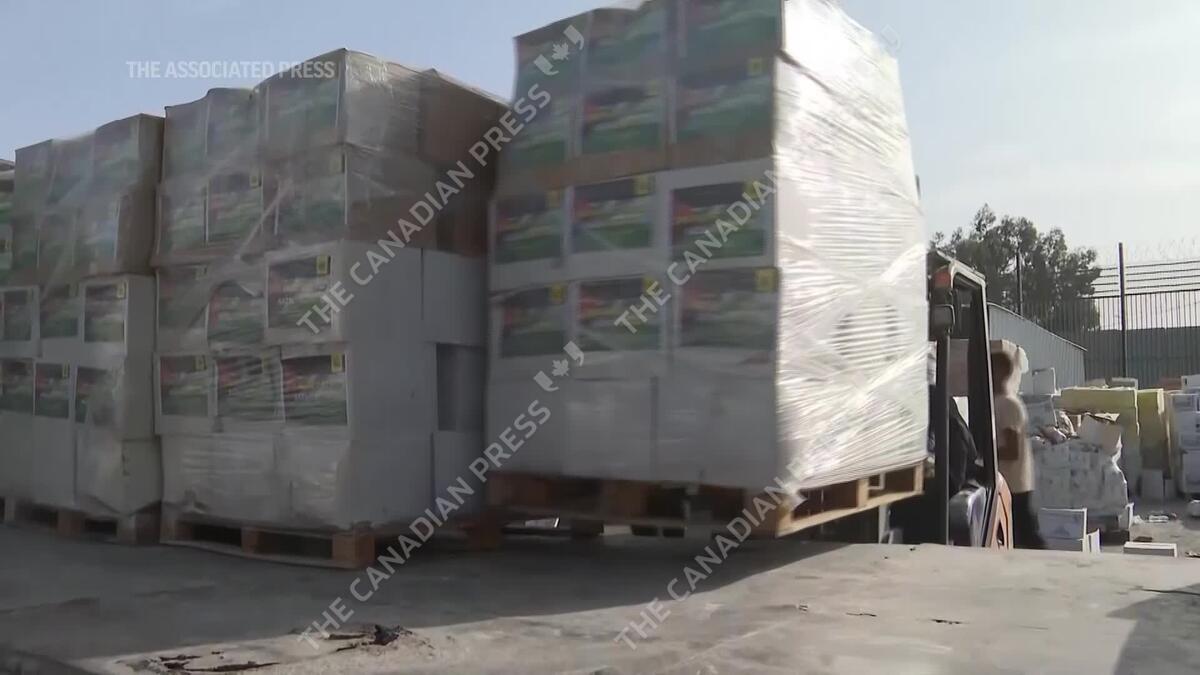 Aid trucks were seen in Rafah in southern Gaza on Wednesday, as Palestinians rushed to receive any humanitarian supplies. Humanitarian supplies were later unloaded by aid workers. Palestinians in Gaza are still struggling to receive basic food, aid and services. (AP video/Mohammad Jahjouh)