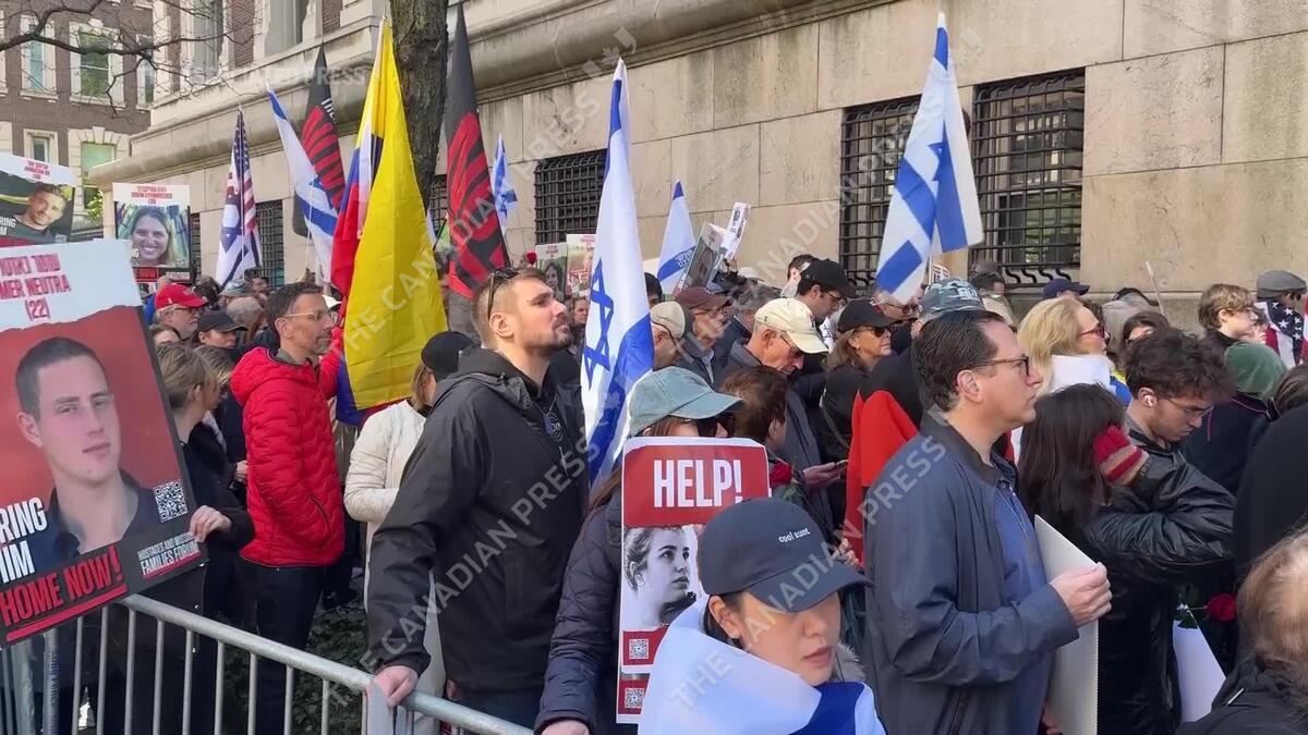 Pro-Israeli demonstrators gathered at Columbia University in New York on Friday, rallying for the release of hostages held by Hamas in Gaza.