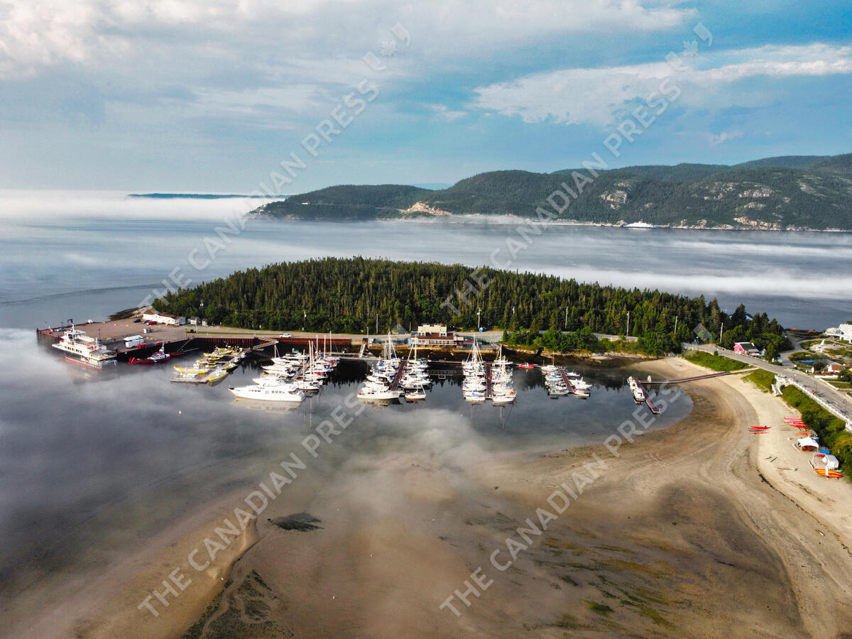 A harbor is pictured from an aerial view, Tadoussac, Quebec Saturday, August 3, 2024. THE CANADIAN PRESS IMAGES/Mario Beauregard
