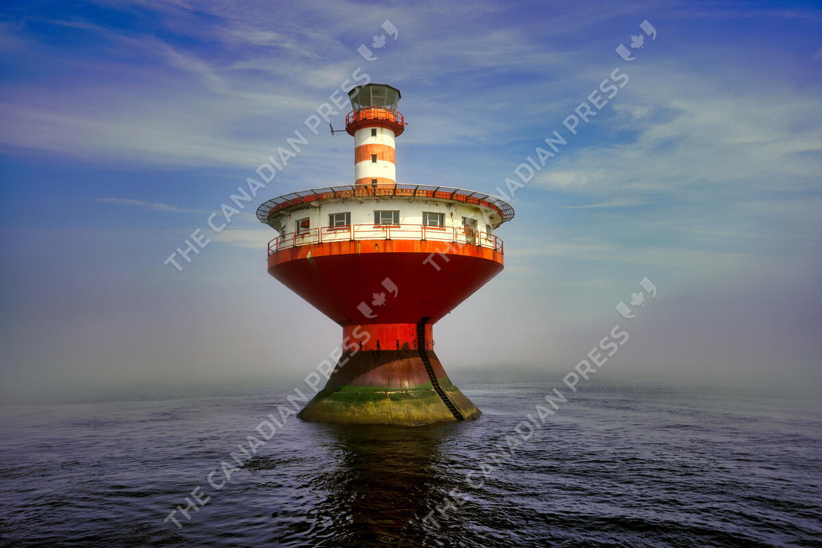 The Haut-Fond Prince Light Tower stands in the the St. Lawrence River, Tadoussac, Quebec, Saturday, August 3, 2024. THE CANADIAN PRESS IMAGES/Mario Beauregard