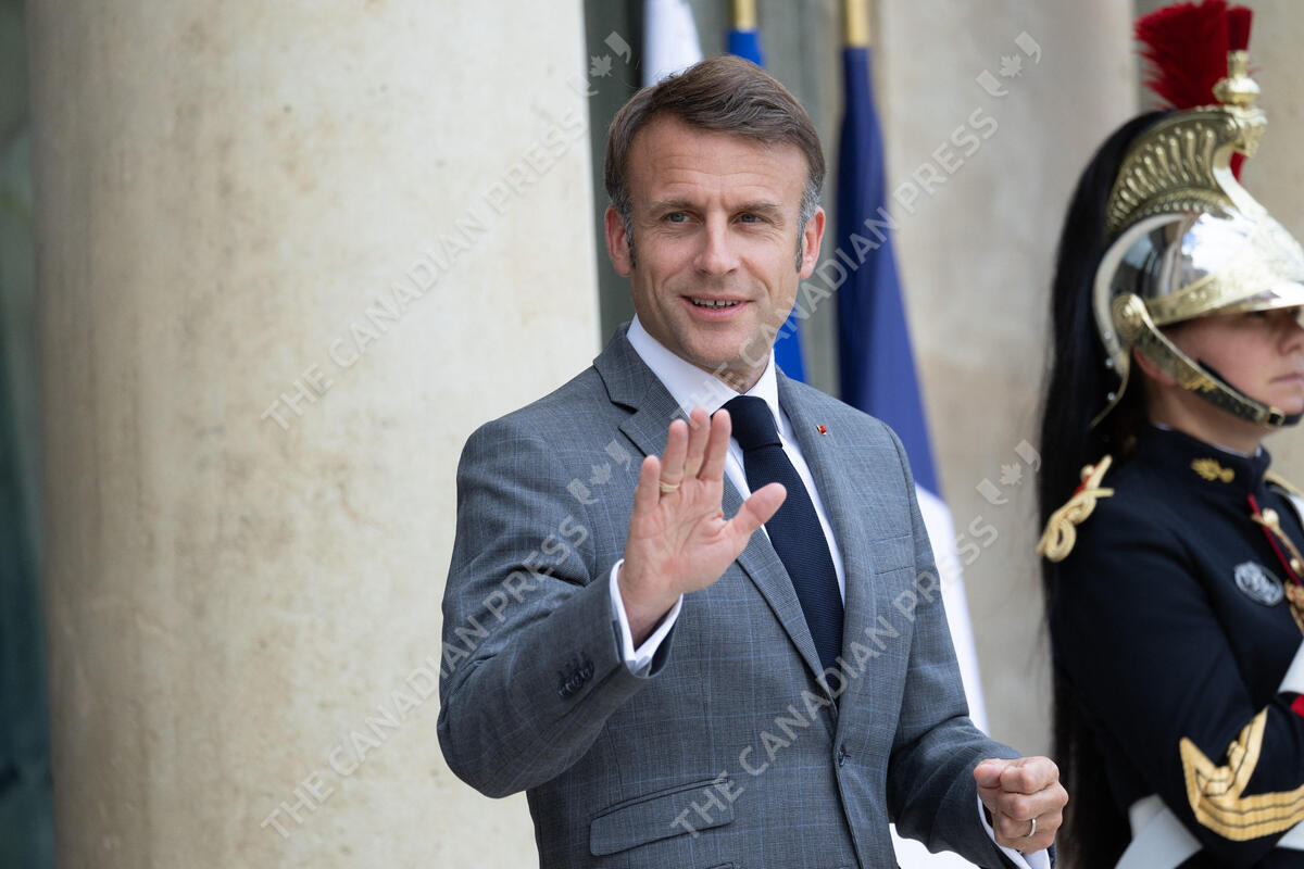 French President Emmanuel Macron waits for arrivals prior to a meeting with International Olympic Committee (IOC) President at the Elysee Presidential Palace in Paris on July 16, 2024, ahead of Paris 2024 Olympic and Paralympic games. Photo by Raphael Lafargue/ABACAPRESS.COM