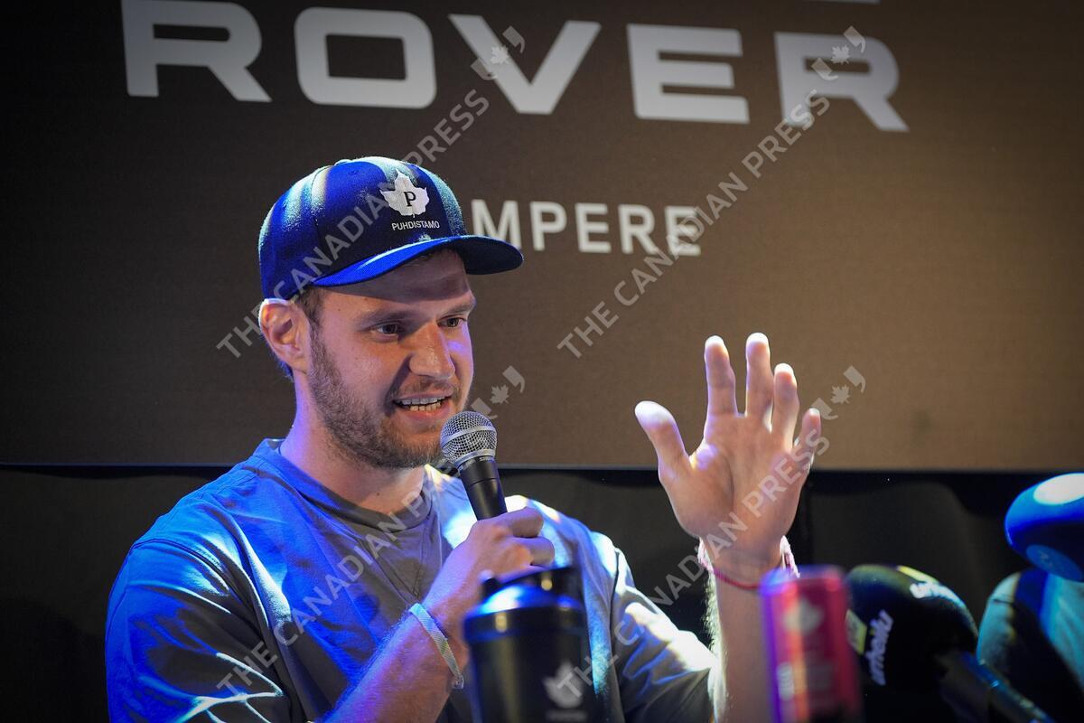 The captain of the NHL's Stanley Cup winner team Florida Panthers, Finnish icehockey player Aleksander Barkov during his press conference at the Nokia PadelOne Arena in Tampere, Finland on 15th July, 2024. LEHTIKUVA / KALLE PARKKINEN - FINLAND OUT. NO THIRD PARTY SALES.