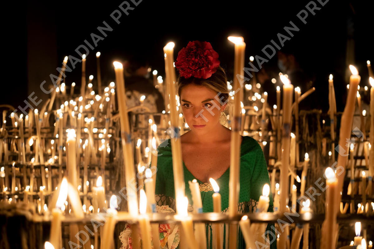A pilgrim lights a candle in the sanctuary of the virgin of the RocÃo in the village of El RocÃo in Almonte, Spain, on Saturday June 4, 2022, during the annual pilgrimage in which hundreds of thousands of devotees of the Virgin del Rocio converge in and around the shrine. After a two-year hiatus forced by the pandemic, tens of thousands of pilgrims descended on the tiny Spanish village of El RocÃo to take part in riotously colorful and ancient festival, la RomerÃa del RocÃo, or the RocÃo virgin pilgrimage. (AP Photo/Joan Mateu Parra)