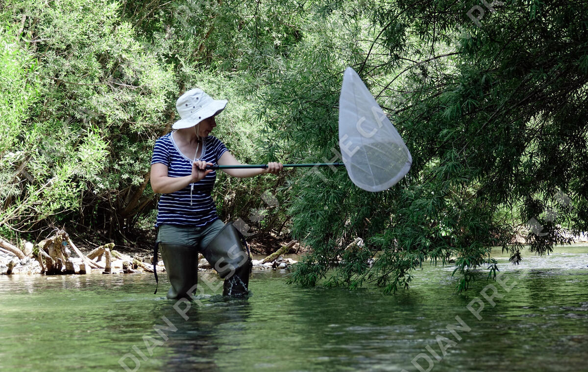 A scientist collects insects from water and surrounding vegetation on the Neretva river near the village Ulog, Bosnia, Thursday, June 30, 2022. It took a decade of court battles and street protests, but Balkan activists fighting to protect some of Europe's last wild rivers have scored an important conservation victory in Bosnia. A new electricity law, which passed Thursday, bans the further construction of small hydroelectric power plants in the larger of Bosnia's two independent entities. (AP Photo/Eldar Emric)
