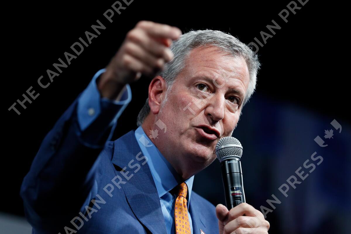 FILE - Former New York City Mayor Bill de Blasio speaks at the Presidential Gun Sense Forum, Aug. 10, 2019, in Des Moines, Iowa. Bill de Blasio is dropping out of the crowded race for the Democratic nomination in a redrawn Congressional district that includes his Brooklyn home. (AP Photo/Charlie Neibergall, File)