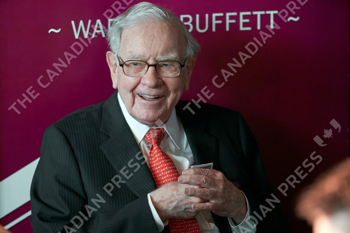 FILE - Warren Buffett, chairman and CEO of Berkshire Hathaway, smiles as he plays bridge following the annual Berkshire Hathaway shareholders meeting in Omaha, Neb., on May 5, 2019. Berkshire Hathaway now owns nearly $11 billion worth of Occidental Petroleum stock after buying another 1.9 million shares in the past week. The latest purchases of nearly $117 million in stock that Berkshire reported to the Securities and Exchange Commission on Monday, July 18, 2022, give the Omaha, Nebraska-based conglomerate control of 19.4% of the oil producer's stock. (AP Photo/Nati Harnik, File)