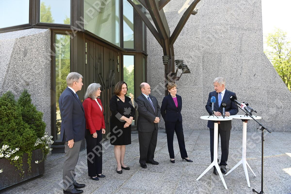 President of Finland Sauli Niinistö (R) and United States Senate NATO Observer Group Senators (L-R) Roy Blunt, Joni Ernst, Deb Fischer, Chris Coons and Jeanne Shaheen hold a press conference in Helsinki, Finland, on June 27, 2022. The President and the Senators have discussed the current security policy situation, the main themes of the NATO Summit to be held in Madrid this week, and Finland's NATO membership at their meeting. LEHTIKUVA / MARKKU ULANDER - FINLAND OUT. NO THIRD PARTY SALES.