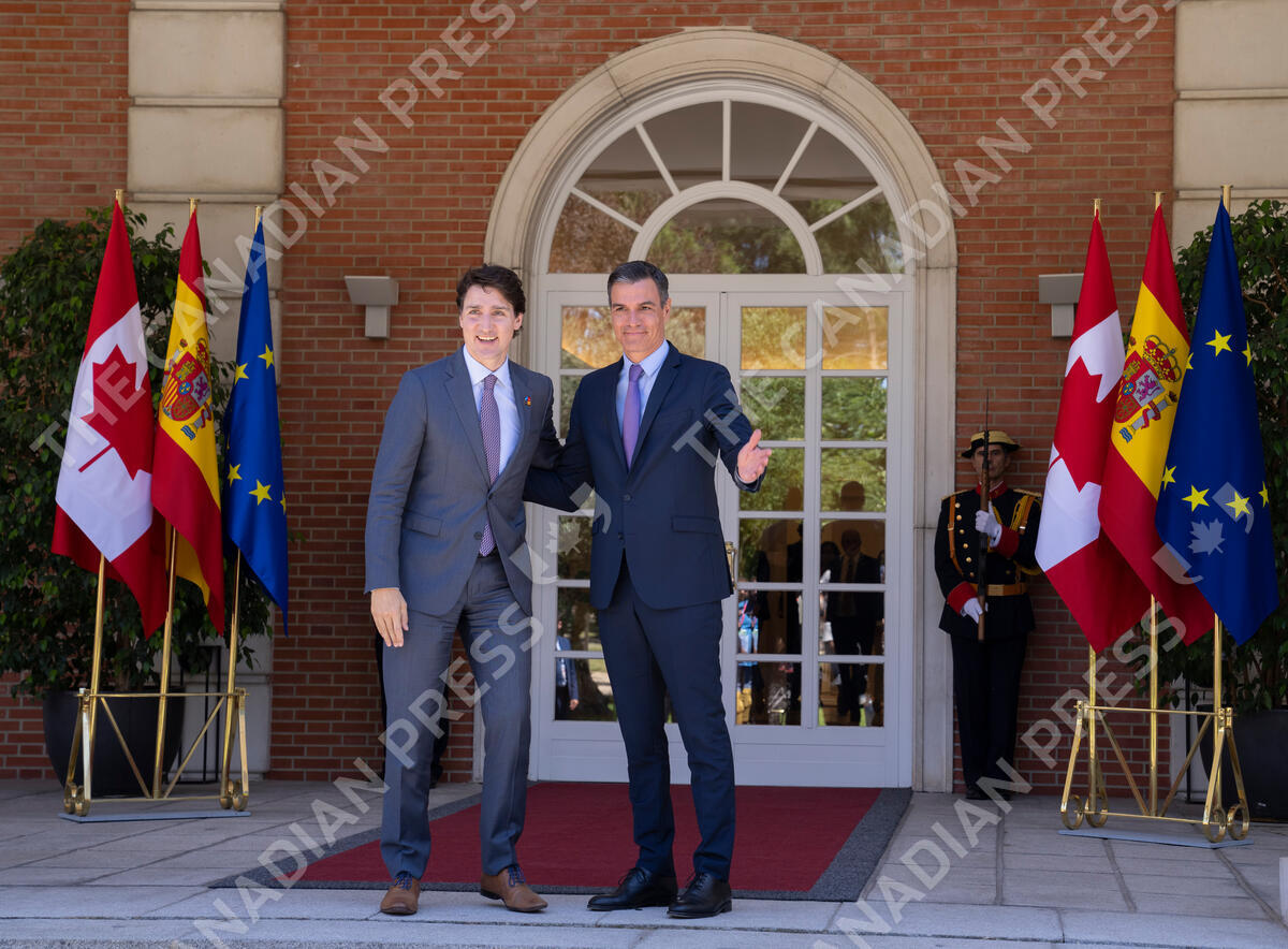 Prime Minister Justin Trudeau is greeted by Prime Minister of Spain Pedro Sánchez, in Madrid on Thursday, June 30, 2022. THE CANADIAN PRESS/Paul Chiasson