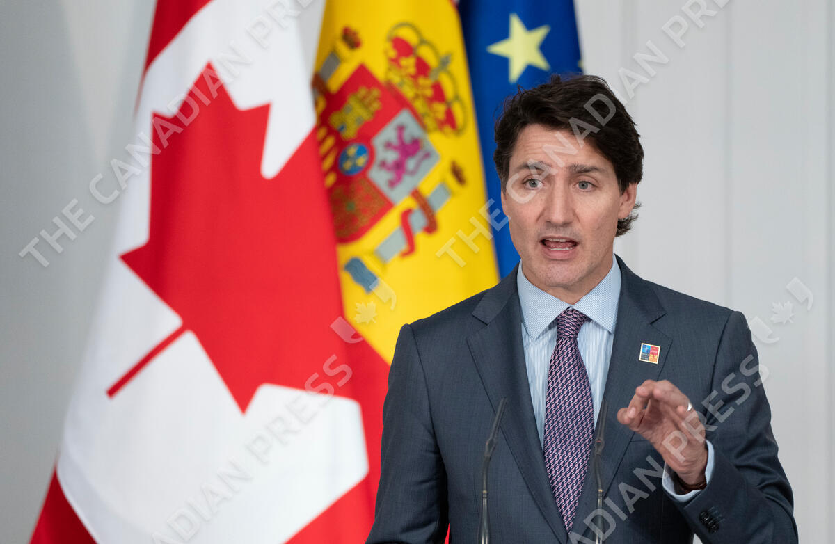 Prime Minister Justin Trudeau delivers a statement after meeting with Prime Minister of Spain, Pedro Sánchez, in Madrid on Thursday, June 30, 2022. THE CANADIAN PRESS/Paul Chiasson