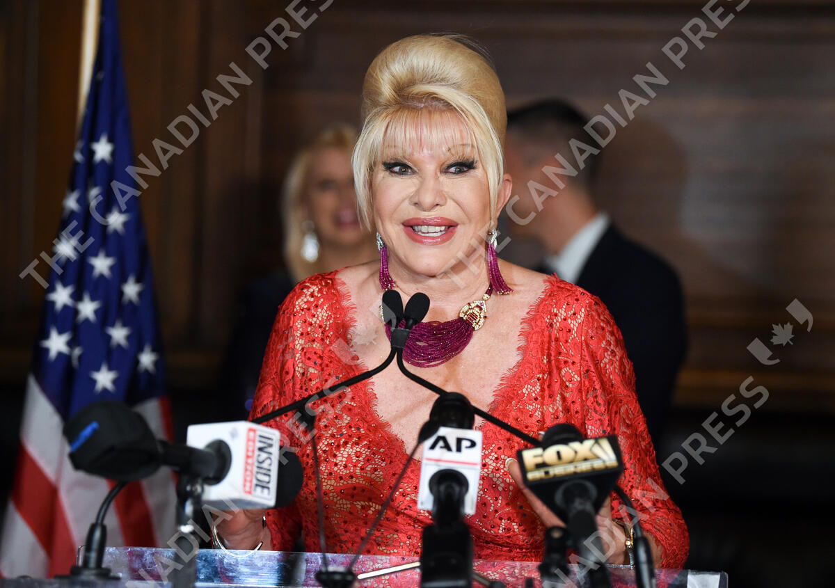 FILE - Ivana Trump announces the new "Italiano Diet" to stay healthy and fight obesity at the Oak Room at the Plaza Hotel on June 13, 2018, in New York. Ivana Trump, the first wife of Donald Trump, has died in New York City, the former president announced on social media Thursday. (Photo by Evan Agostini/Invision/AP, File)