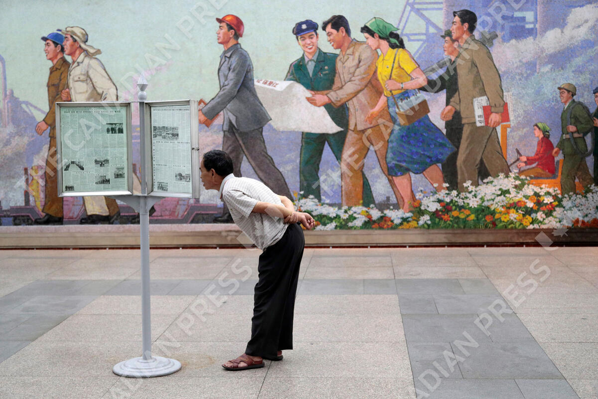 FILE - A man reads newspaper at a subway station in Pyongyang, North Korea, on Sept. 11, 2019. South Korea plans to lift its decades-long ban on public access to North Korean television, newspapers and other media as part of its efforts to promote mutual understanding between the rivals, officials said Friday, July 22, 2022, despite animosities over the North's recent missile tests. (AP Photo/Dita Alangkara, File)