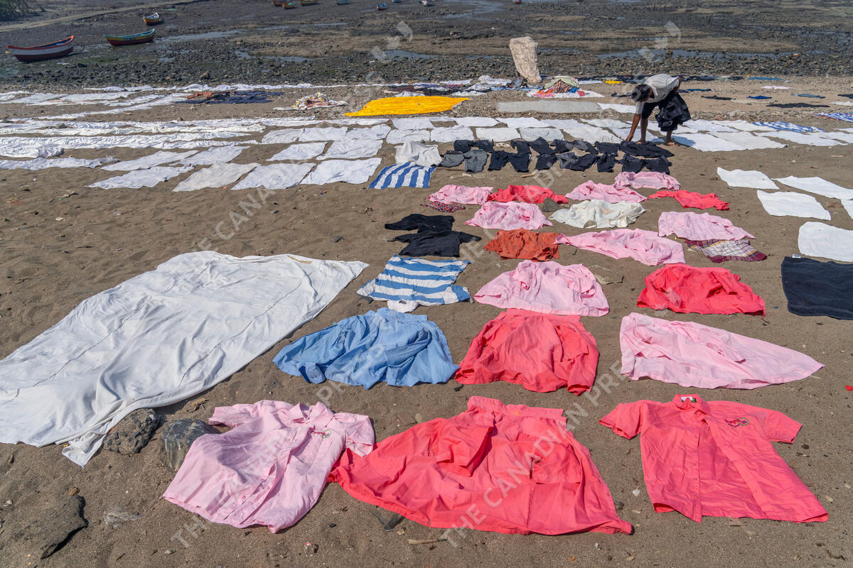A washerman puts clothes to dry on a beach in Bandra in Mumbai, India, Sunday, Feb. 18, 2024. (AP Photo/Rafiq Maqbool)