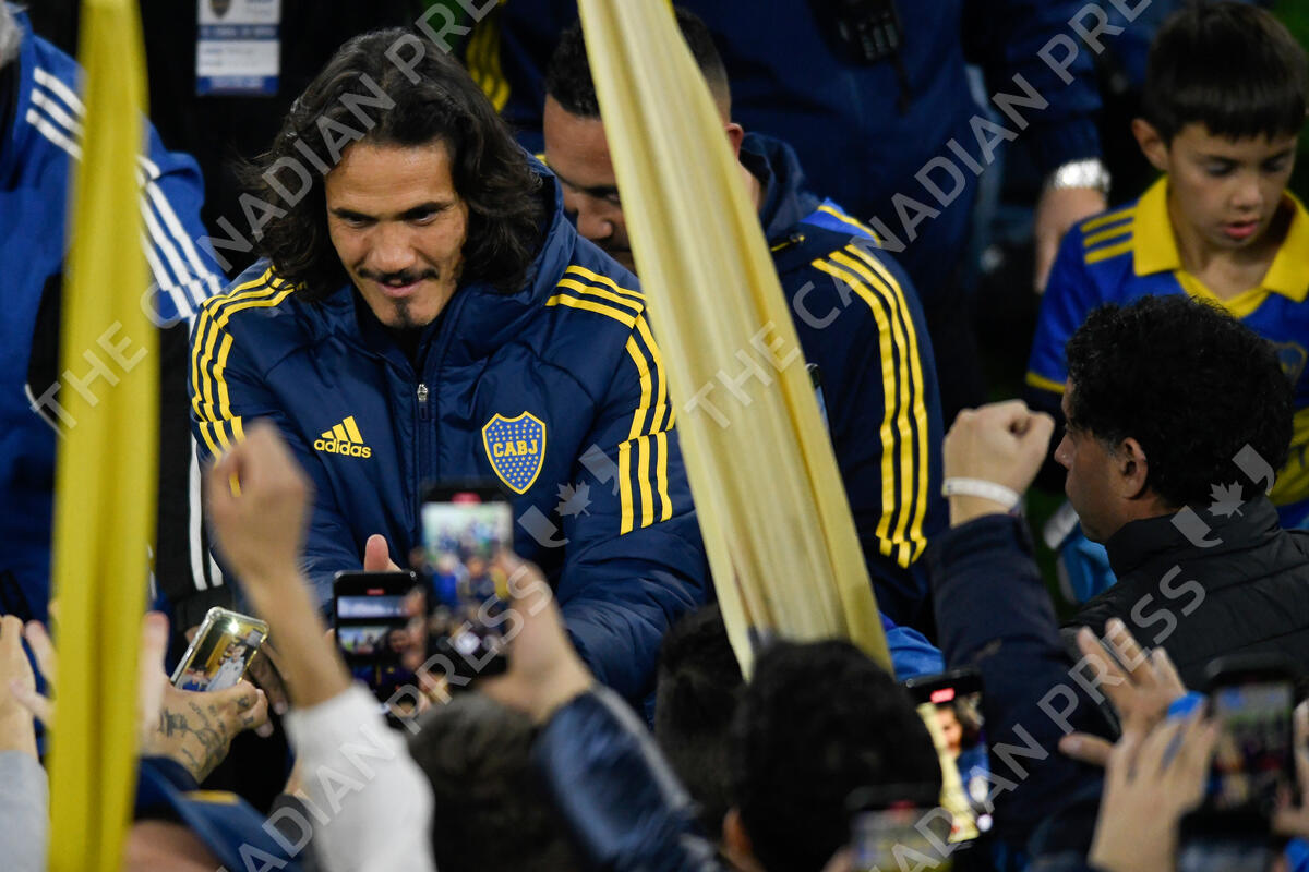 Uruguayan striker Edinson Cavani is mobbed by young fans after entering the Bombonera stadium in Buenos Aires, Argentina, Monday, July 31, 2023. Cavani has joined Boca Juniors following the termination of his contract with La Liga side Valencia. (AP Photo/Gustavo Garello)