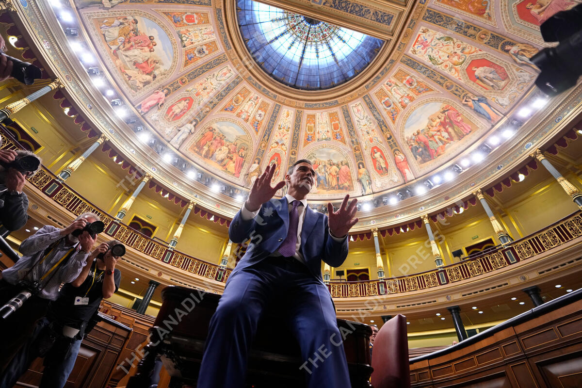 Spain's acting Prime Minister Pedro Sanchez poses for photographers after he was chosen by a majority of legislators to form a new government after a parliamentary vote at the Spanish Parliament in Madrid, Spain, Thursday, Nov. 16, 2023. (AP Photo/Manu Fernandez)