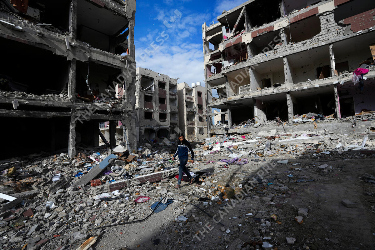 Palestinians visit their houses destroyed in the Israeli bombings southeast of the Gaza City on Tuesday, Nov. 28, 2023. on the fifth day of the temporary ceasefire between Hamas and Israel. (AP Photo/Adel Hana)