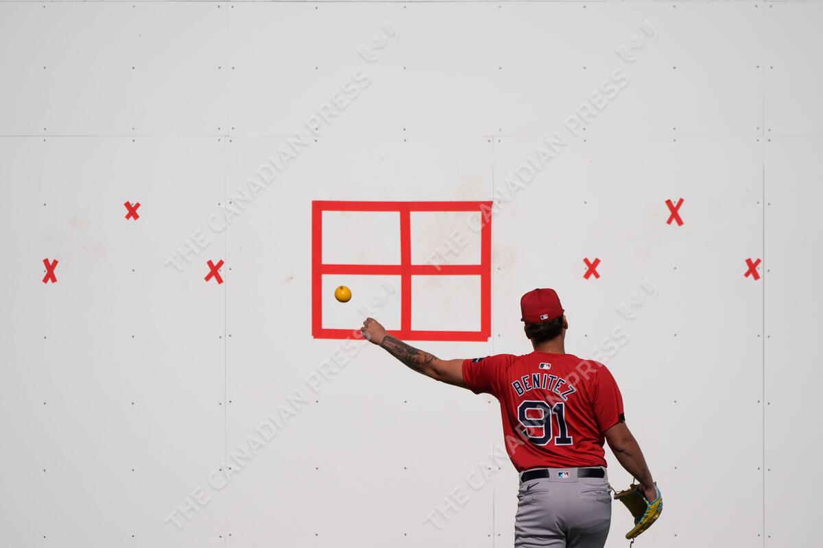 Red Sox pitcher Jorge Benitez works out during spring training in Fort Myers, Fla., Thursday, Feb. 15, 2024. (AP Photo/Gerald Herbert)
