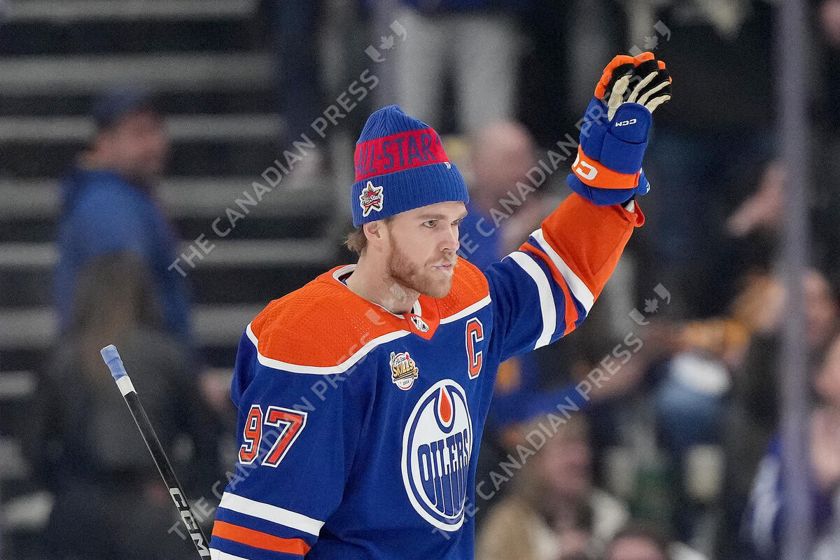 Edmonton Oilers' Connor McDavid acknowledges the crowd after being crowned winner of the NHL All-Star skills competition, in Toronto, Friday, Feb. 2, 2024. THE CANADIAN PRESS/Nathan Denette
