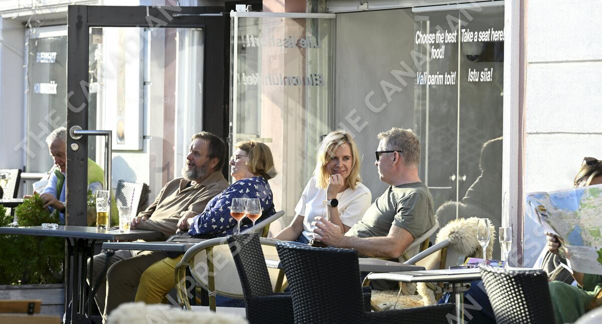 Tourists in a cafe at the Old Town Square (Raekoja plats) in the Old Town of Tallinn, Estonia on 28th September, 2023. LEHTIKUVA / HEIKKI SAUKKOMAA - FINLAND OUT. NO THIRD PARTY SALES.