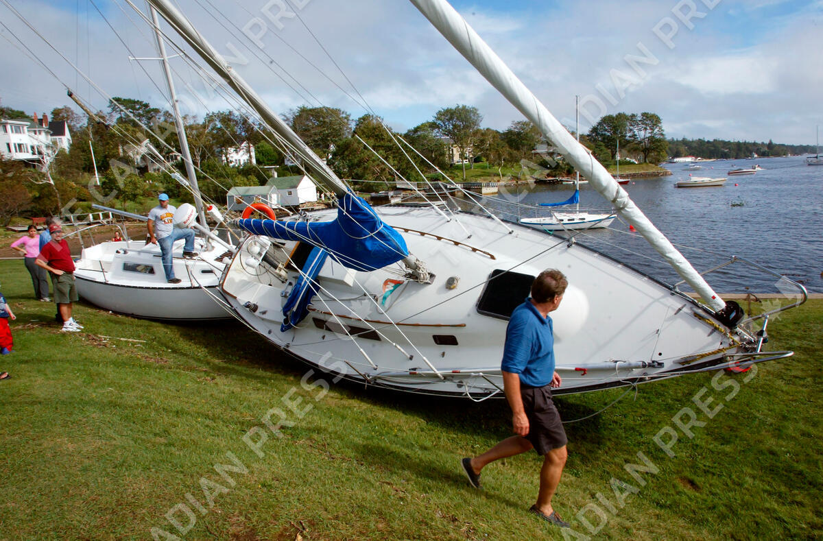 Two sailboats are washed up on the shore in Halifax, Nova Scotia, Canada, Monday, Sept. 29, 2003 after the passage of Hurricane Juan. Two people died and thousands are without power following the overnight storm. THE CANADIAN PRESS/Paul Chiasson