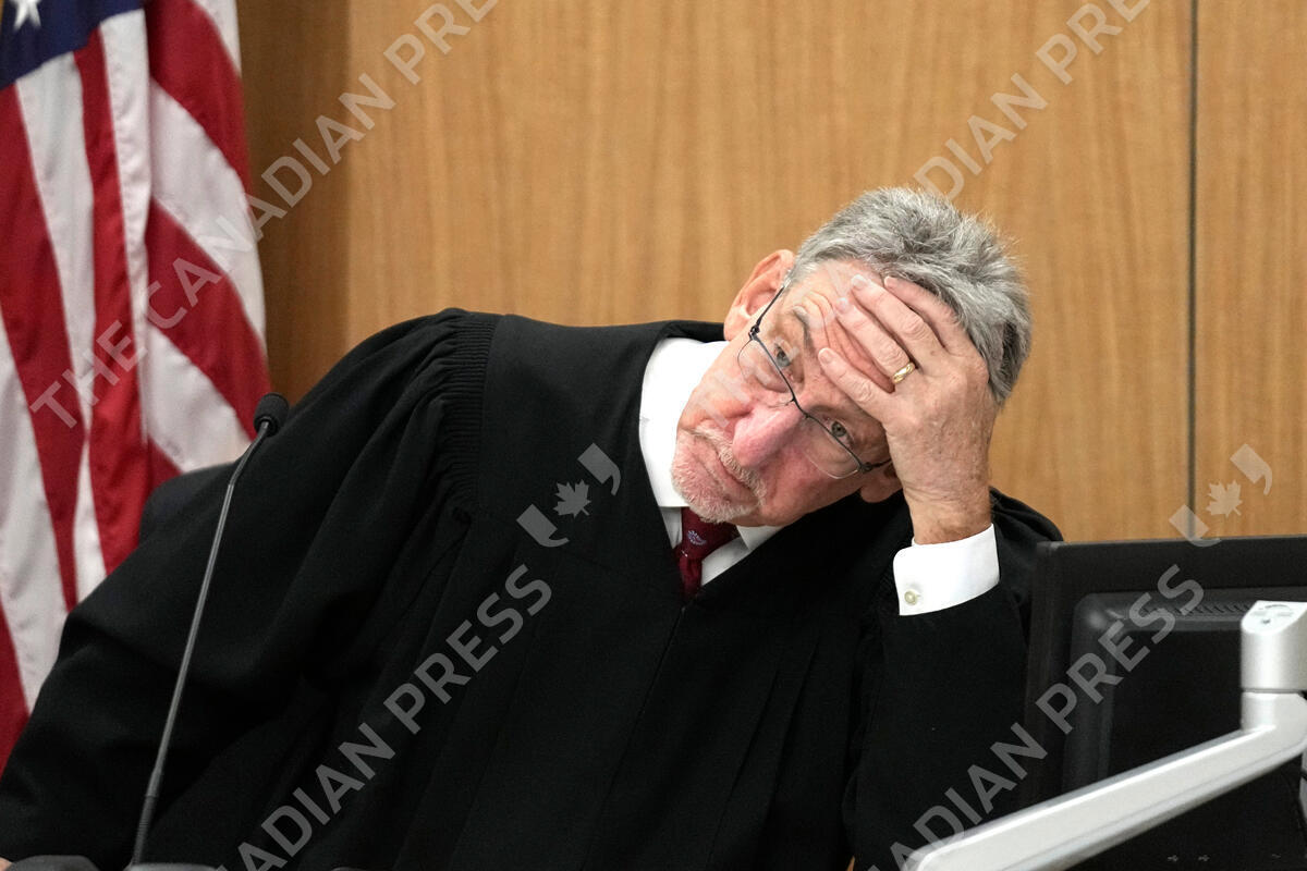 Maricopa County Superior Court Judge John Hannah listens to arguments during the second day of the two-day bench trial brought by Kari Lake, former Arizona Republican candidate for governor, regarding a voting records request, Monday, Sept. 25, 2023, in Phoenix. (AP Photo/Ross D. Franklin, Pool)