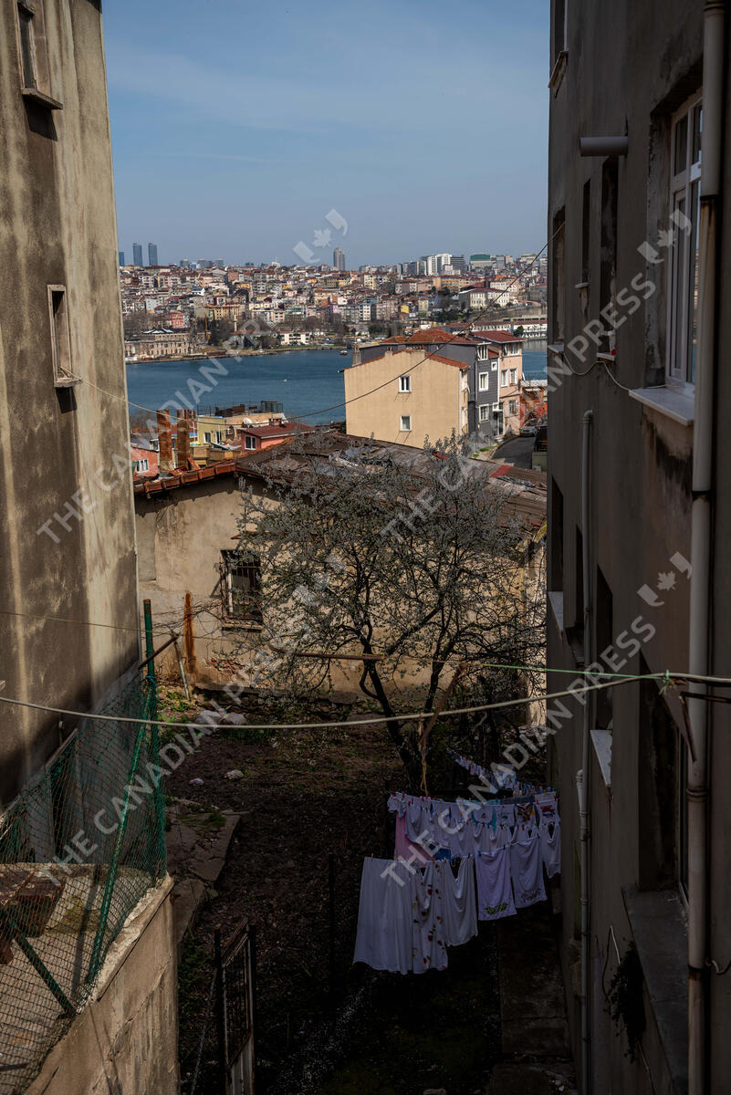 2/20/2022, Istanbul, Turkey, A view of a narrow street. Resident's clothes are hanged on the street to be dryed. . Istanbul, a city embracing both Europe and Asia, daily life unfolds against a backdrop of cultural diversity. Residents navigate a dynamic blend of ancient charm and modern rhythms, creating a unique tapestry where tradition meets contemporary living. Photo by Saeid Arabzadeh/Middle East Images/ABACAPRESS.COM
