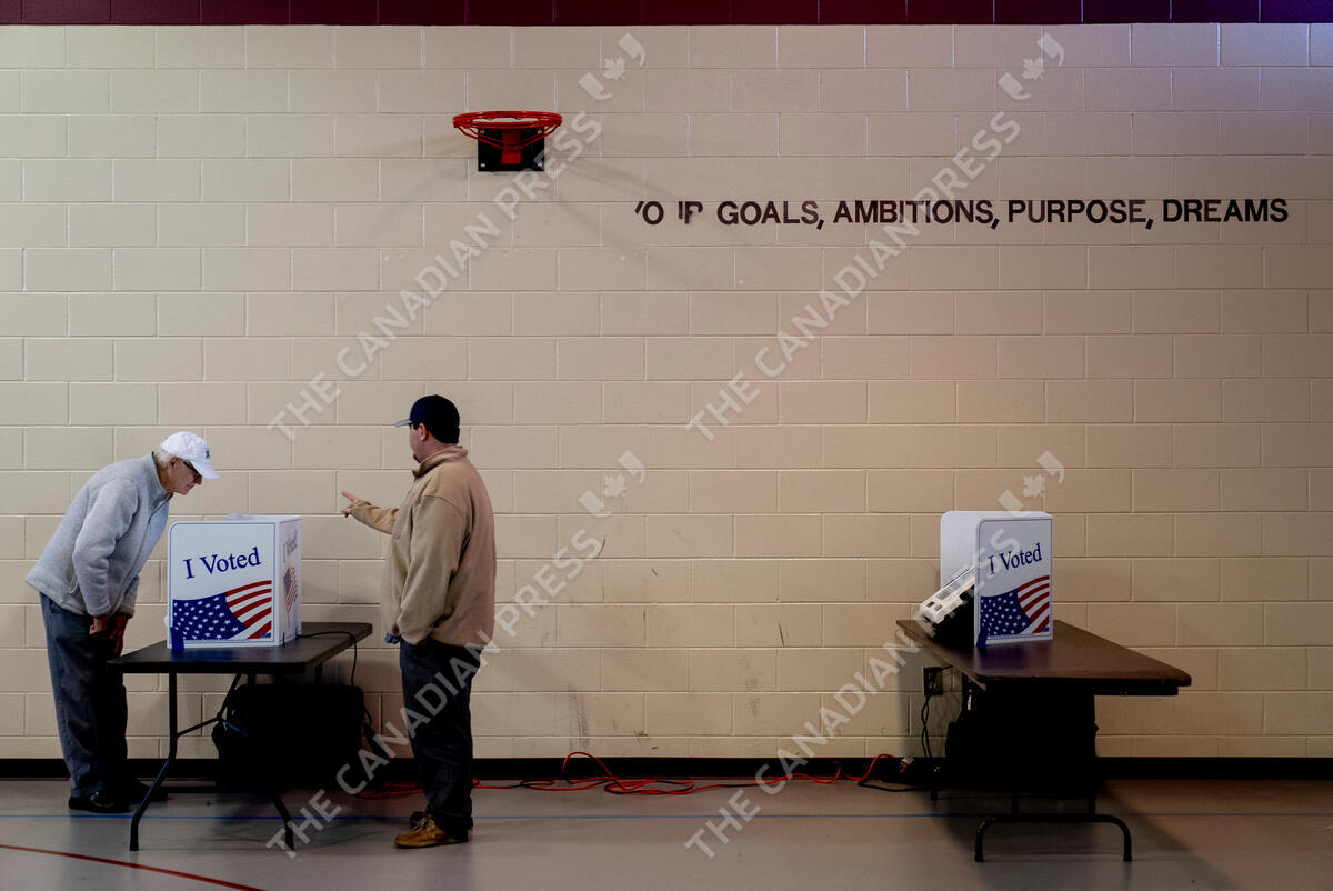 A poll worker helps a resident vote at their voting precinct on the morning of the South Carolina Republican primary at New Bridge Academy in Cayce, S.C., Saturday, Feb. 24, 2024. (AP Photo/Andrew Harnik)