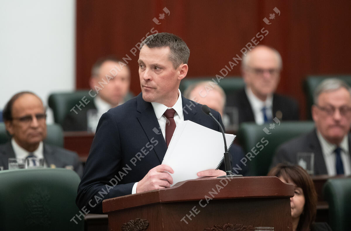 Alberta Finance Minister Nate Horner delivers the 2024 budget in Edmonton, Thursday, Feb. 29, 2024. THE CANADIAN PRESS/Jason Franson.
