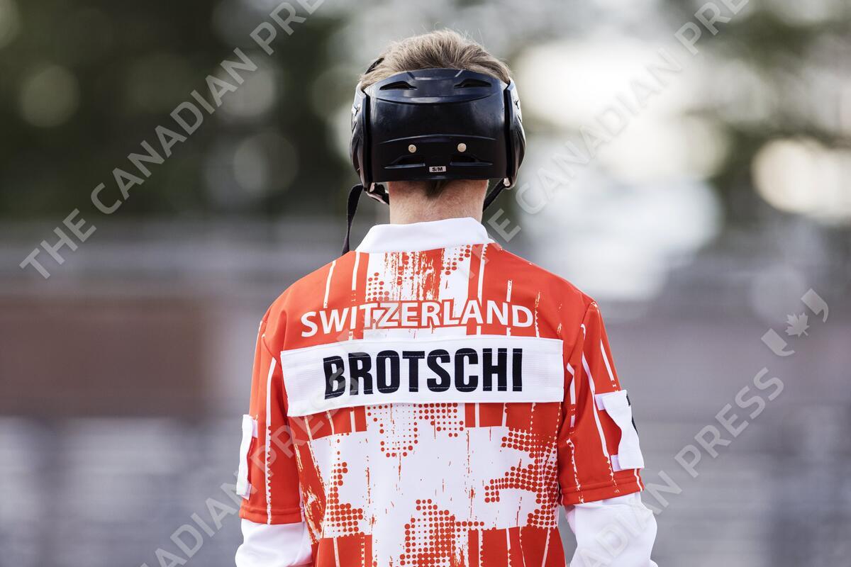 A Swiss player is seen during the Pesäpallo World Cup match between Switzerland2 and Sweden in Hyvinkää, Finland, on July 26, 2023. Finnish national game pesäpallo celebrated its 100th anniversary 2022. The World Cup tournament is part of festivities although it was postponed until 2023 because of uncertainties related to global covid-19 situation. LEHTIKUVA / RONI REKOMAA - FINLAND OUT. NO THIRD PARTY SALES.