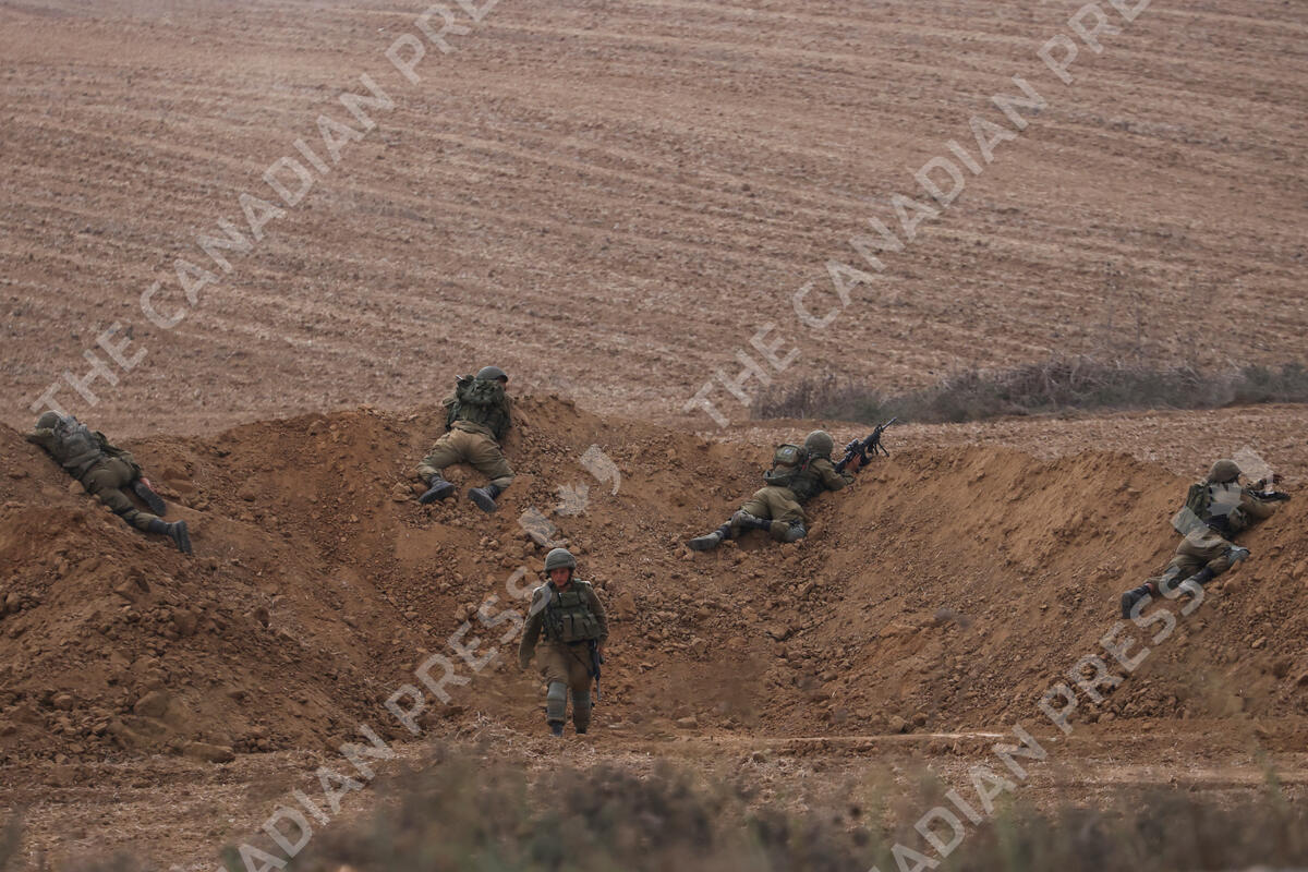 FILE - Israeli soldiers take position near the Israeli Gaza border, southern Israel, Monday, Oct. 9, 2023. (AP Photo/Oren Ziv, File)