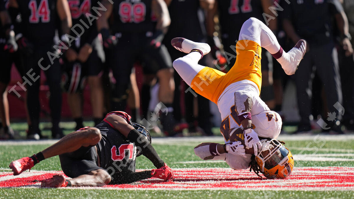 Utah cornerback Zemaiah Vaughn (5) tackles Arizona State running back Kyson Brown (14) during the first half of an NCAA college football game Saturday, Nov. 4, 2023, in Salt Lake City. (AP Photo/Rick Bowmer)