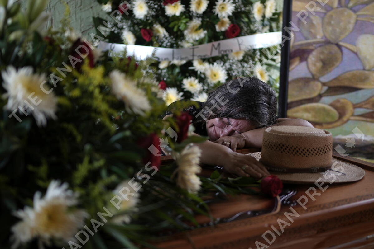 Olivia Mora cries over the casket of her brother, armed civilian defense leader Hipolito Mora, during his wake in La Ruana, Mexico, Friday, June 30, 2023. The Michoacan state prosecutors office said unidentified gunmen cut off Mora's vehicle and his bodyguards' pickup on a street in his hometown of La Ruana. (AP Photo/Eduardo Verdugo)