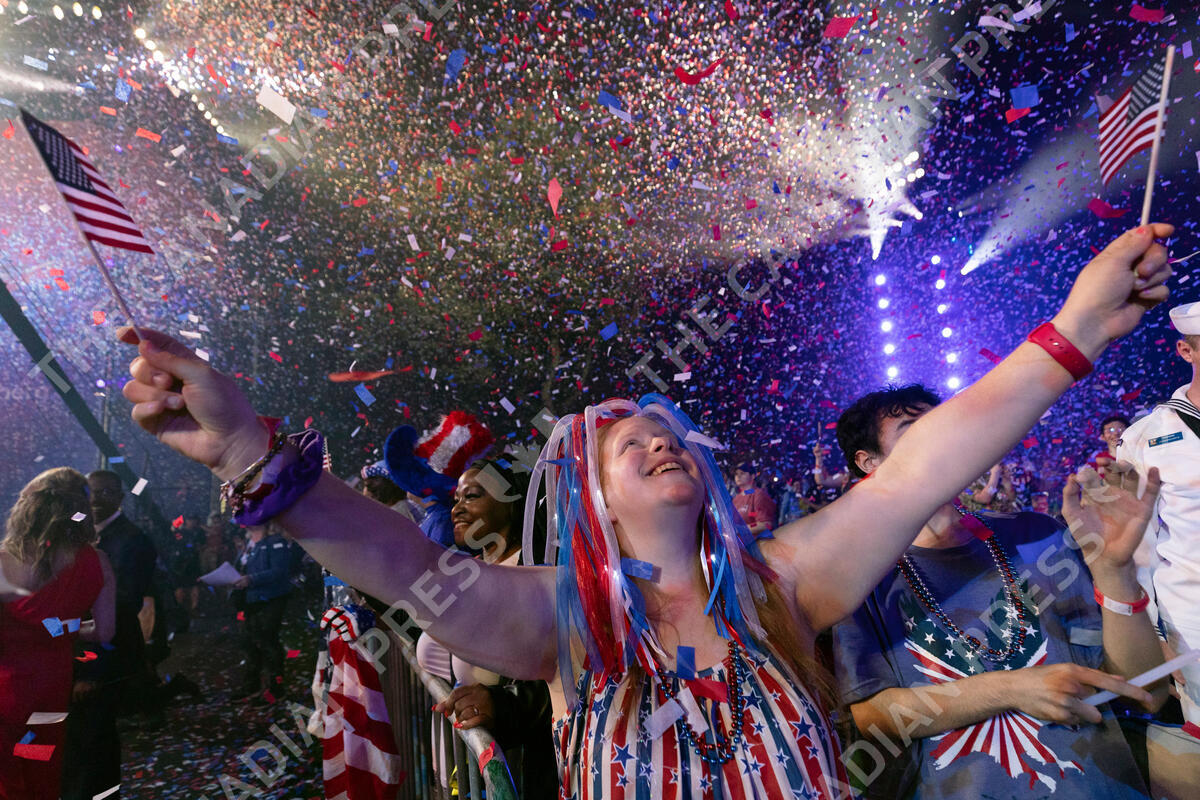 Confetti falls on the audience during the Boston Pops Fireworks Spectacular at the Hatch Shell, Tuesday, July 4, 2023, in Boston. (AP Photo/Michael Dwyer)