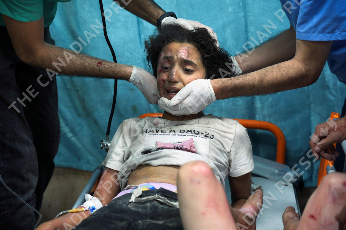 A Palestinian child wounded in Israeli bombardment is treated in a hospital in Deir al-Balah, southern Gaza Strip, Tuesday, Oct. 17, 2023. (AP Photo/Hatem Moussa)