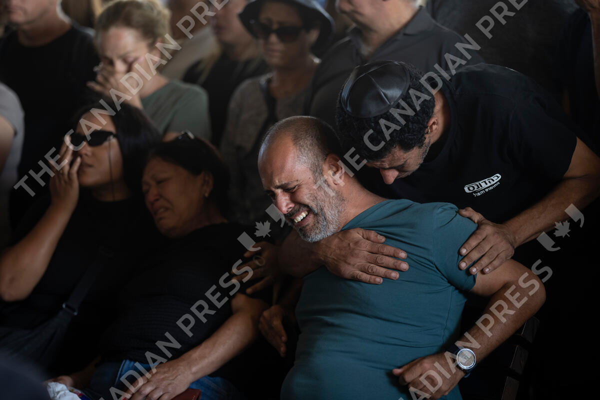 Mourners attend the funeral of the Israeli woman Shiraz Tamam, killed by Hamas militants while attending a music festival, at a cemetery in Holon, central Israel, Tuesday, Oct. 17, 2023. (AP Photo/Petros Giannakouris