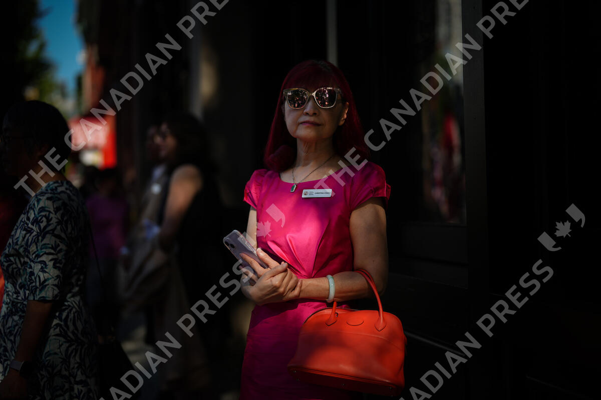 Christina Chang, a Chinese Canadian Museum board member, waits for a grand opening ceremony for the museum to begin, in Vancouver, on Friday, June 30, 2023. The new museum is located in the historic Wing Sang Building, Vancouver Chinatown's oldest building, and opens to the public on July 1. THE CANADIAN PRESS/Darryl Dyck