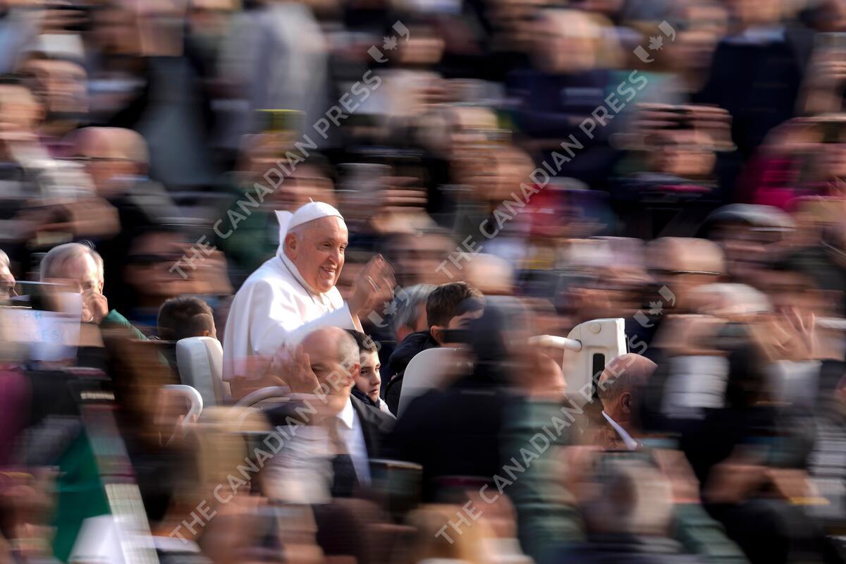 Pope Francis arrives for his weekly general audience in St. Peter's Square, at the Vatican, Wednesday, Nov. 22, 2023. (AP Photo/Andrew Medichini)