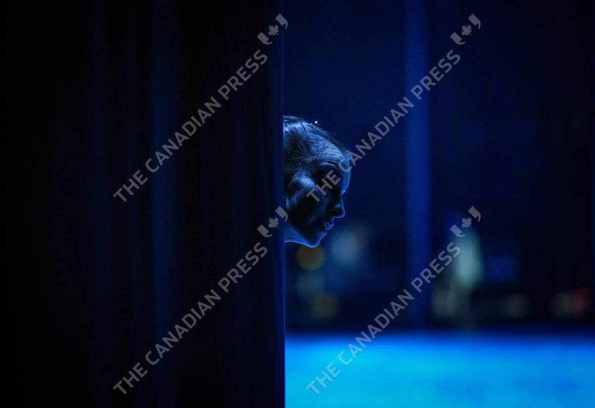 A member of the National Ballet of Ukraine checks on a fellow dancer before taking the stage during a performance of "Nadiya Ukraine" (Hope for Ukraine) on their opening night in Vancouver, on Monday, February 5, 2024. Twenty-three dancers are on a Canadian tour highlighting Ukrainian culture through traditional dance while also supporting the war effort by collecting donations from the audience for Ukraine First Lady Olena Zelenska's Foundation and Humanite. THE CANADIAN PRESS/Darryl Dyck