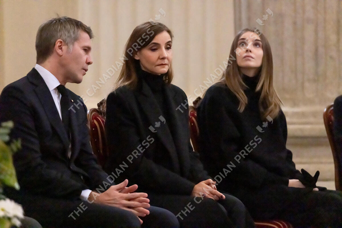 Prince Emanuele Filiberto of Savoy with his family: his wife Clotilde Courau, and his daugthers Vittoria di Savoia and Luisa di Savoia attend the official opening of the burial chamber in Saint Umberto Church of SAR Prince Vittorio Emanuele of Savoy. Venaria Reale (Italy) February 9th, 2024. Photo by Marco Piovanotto/Abacapress.com