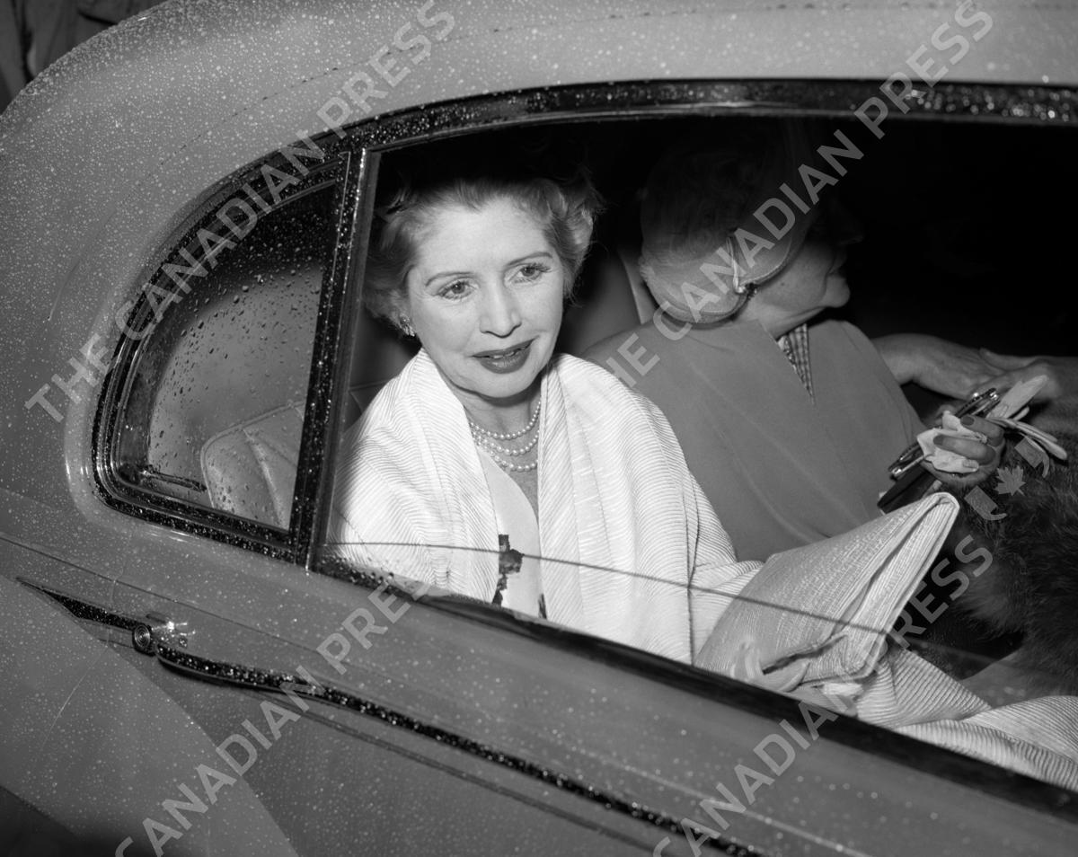Smiling faintly, Lady Docker pictured in the car as she drove away from Grosvenor House with husband Sir Bernard Docker (not pictured) after attending an extraordinary general meeting of BSA (Birmingham Small Arms Company) shareholders. The meeting has been requisitioned by Sir Bernard, who hoped for reinstatement as chairman and managing director. He was dismissed from the post on May 31st.