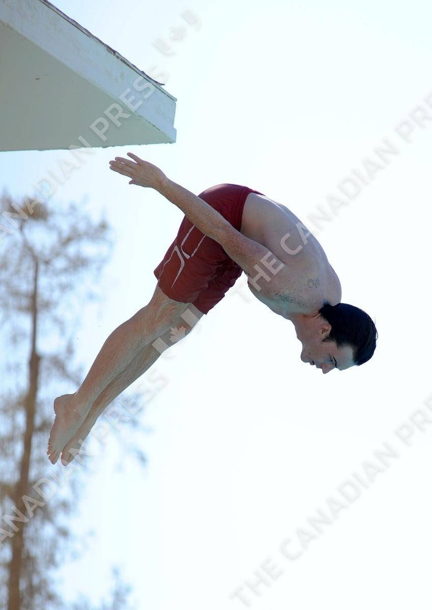 Drake Bell on the set of "Celebrity Splash" practicing his dives in Santa Monica, USA.