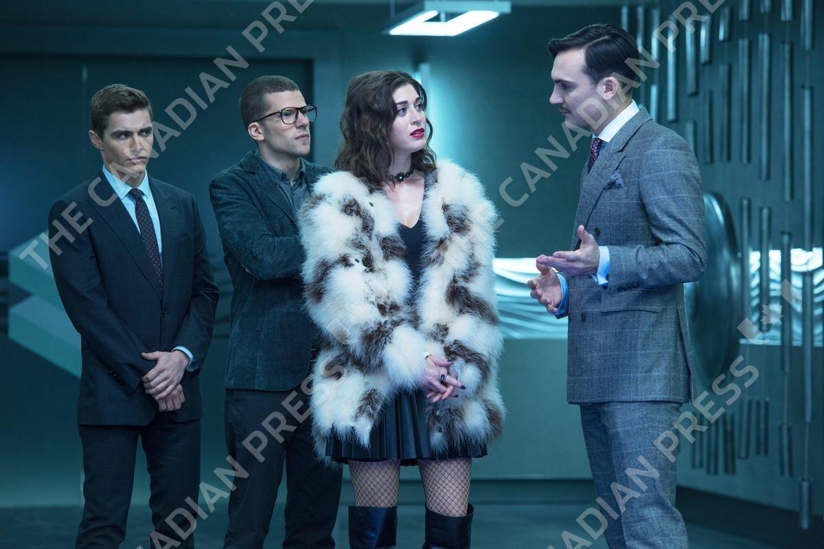 NOW YOU SEE ME 2, l-r: Dave Franco, Jesse Eisenberg, Lizzy Caplan Henry Lloyd-Hughes, 2016. ph: Jay Maidment/©Summit Entertaiment/courtesy Everett Collection