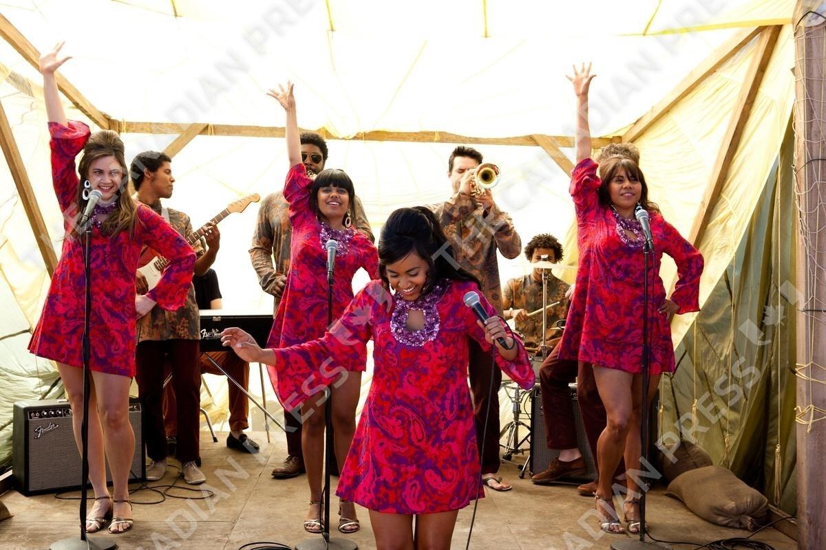 THE SAPPHIRES, front, from left: Shari Sebbens, Miranda Tapsell, Jessica Mauboy, Deborah Mailman, 2012. ©Weinstein Company/Courtesy Everett Collection