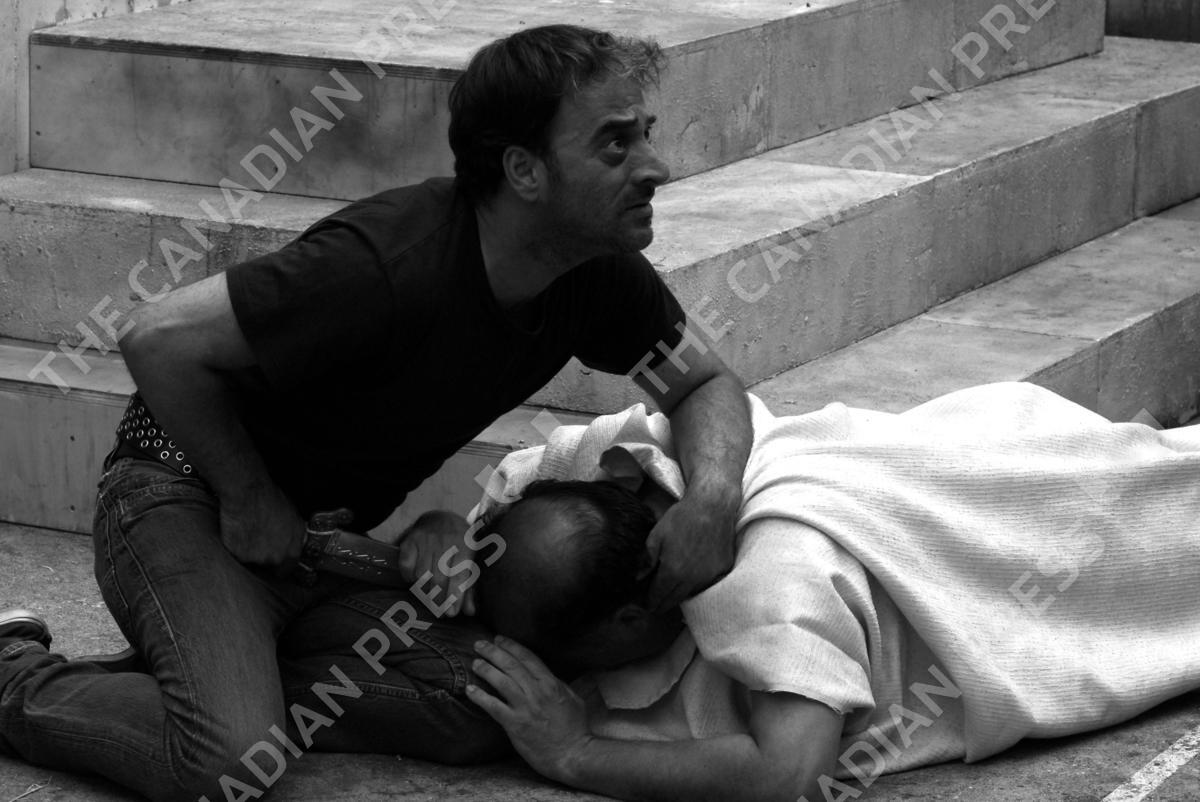 CAESAR MUST DIE, (aka CESARE DEVE MORIRE), center from left: Salvatore Striano as Brutus, Giovanni Arcuri as Caesar, 2012. ©Adopt Films/courtesy Everett Collection