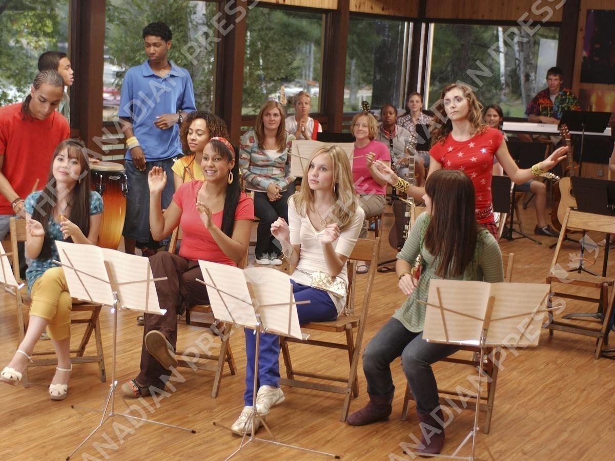 CAMP ROCK, (standing, 2nd row): Alyson Stoner (front row): Anna Maria Perez de Talge, Jasmine Richards, Meaghan Jette Martin, Demi Lovato, 2008. photo: John Medland / © Disney Channel / Courtesy: Everett Collectiond