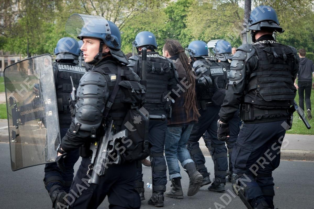 Demonstrators march in protest against government's reform of the labor code, in Paris, France, April 28, 2016. Protests turned violent in Paris and other French cities as tens of thousands protesters made a new push to force the government to drop a draft bill to reform the country's labor code. Photo by Audrey Poree/ABACAPRESS.COM