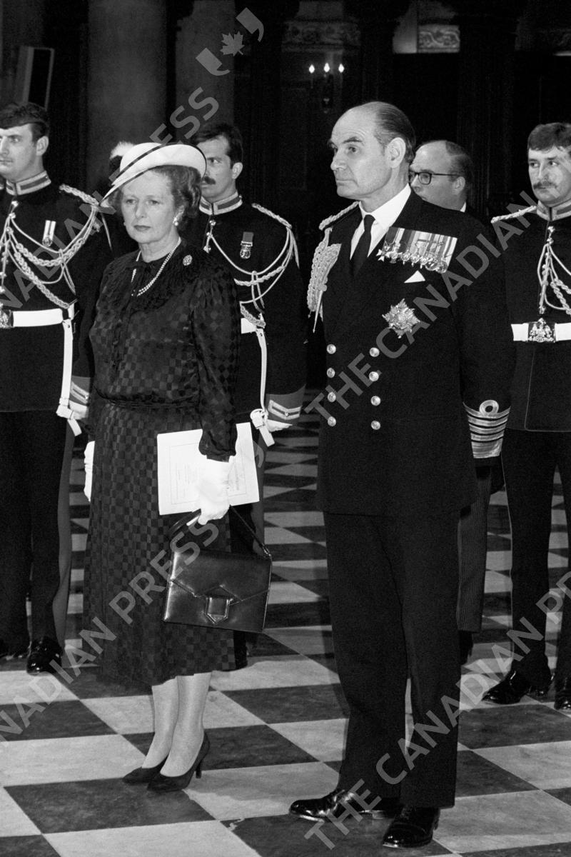 The Prime Minister, Mrs Margaret Thatcher with Admiral of the Fleet, Sir Terrence Lewin the Chief of Defence Staff, at St Paul's Cathedral after the Falkland Islands Service.